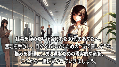 30代の仕事の悩み朝、目が覚めた瞬間からもう疲れている。 会社へ行く支度をしながら、「どうしてこんなにしんどいんだろう」とため息がこぼれる。 上司の顔を思い出すだけで胸が重くなり、電車に乗る足取りがどんどん遅くなる。 ——そんな毎日を、ど...