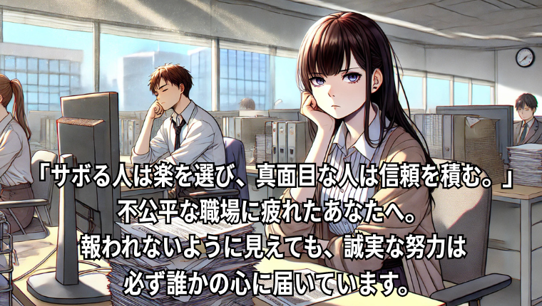 この記事では、仕事をサボる人がたどるリアルな末路と、真面目に頑張るあなたがどうすれば心を守りながら報われていくのかをお伝えします。