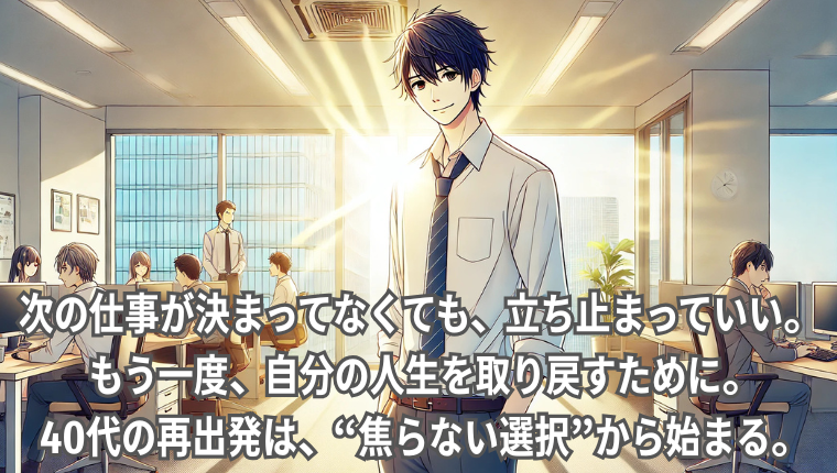 人生は何度でも立て直せます。40代からの転職は、遅いどころか「本当の自分に戻るチャンス」です。自分を信じて、小さな一歩を踏み出してみてください。